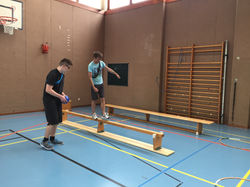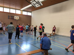 Nach der Theorie ging es zur Praxis in die Turnhalle des KMG, in der die Schüler eine Sportstunde für eine Gruppe unserer Sportler mit einer geistigen Behinderung vorbereiteten.